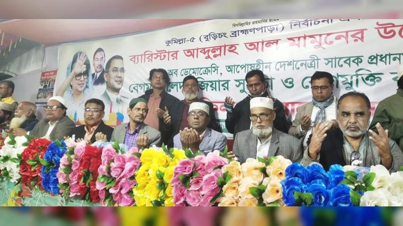 বিএনপি চেয়ারপারসন বেগম খালেদা জিয়ার দ্রুত রোগমুক্তি কামনা করে দোয়া মাহফিল ও আলোচনা সভার আয়োজন করেছেন প্রধান উপদেষ্টার আইনজীবী, বাংলাদেশ বার কাউন্সিলের শিক্ষা কমিটির চেয়ারম্যান এবং কুমিল্লা-৫ (বুড়িচং-ব্রাহ্মণপাড়া) আসনে বিএনপির মনোনয়ন প্রত্যাশী ব্যারিস্টার আব্দুল্লাহ আল মামুন।